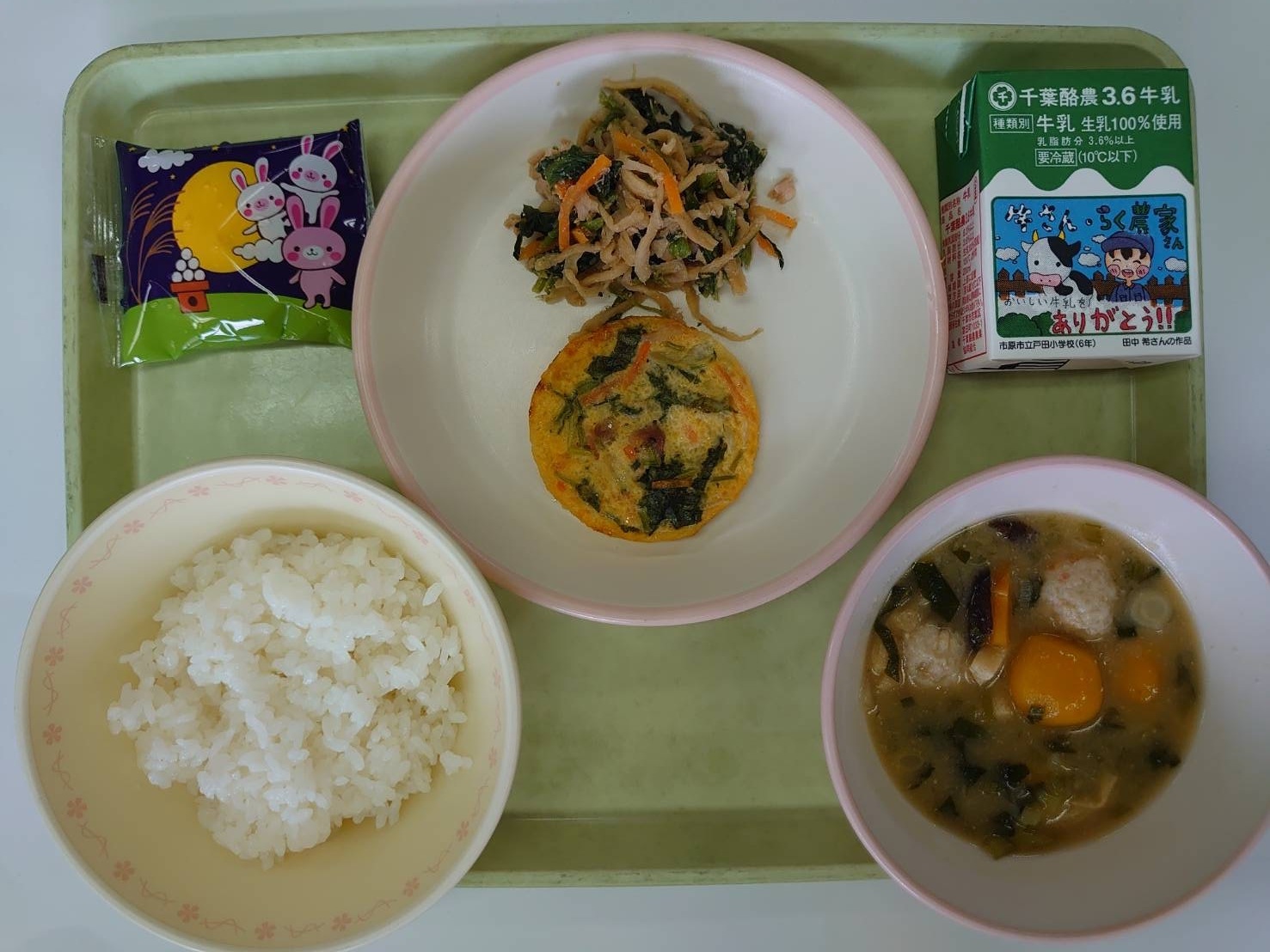 ・ごはん ・親子焼き ・切り干し大根のツナ和え ・お月見だんご汁 ・お月見大福 ・牛乳