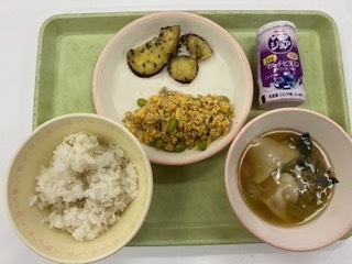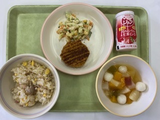 ・ごはん ・親子焼き ・切り干し大根のツナ和え ・お月見だんご汁 ・お月見大福 ・牛乳